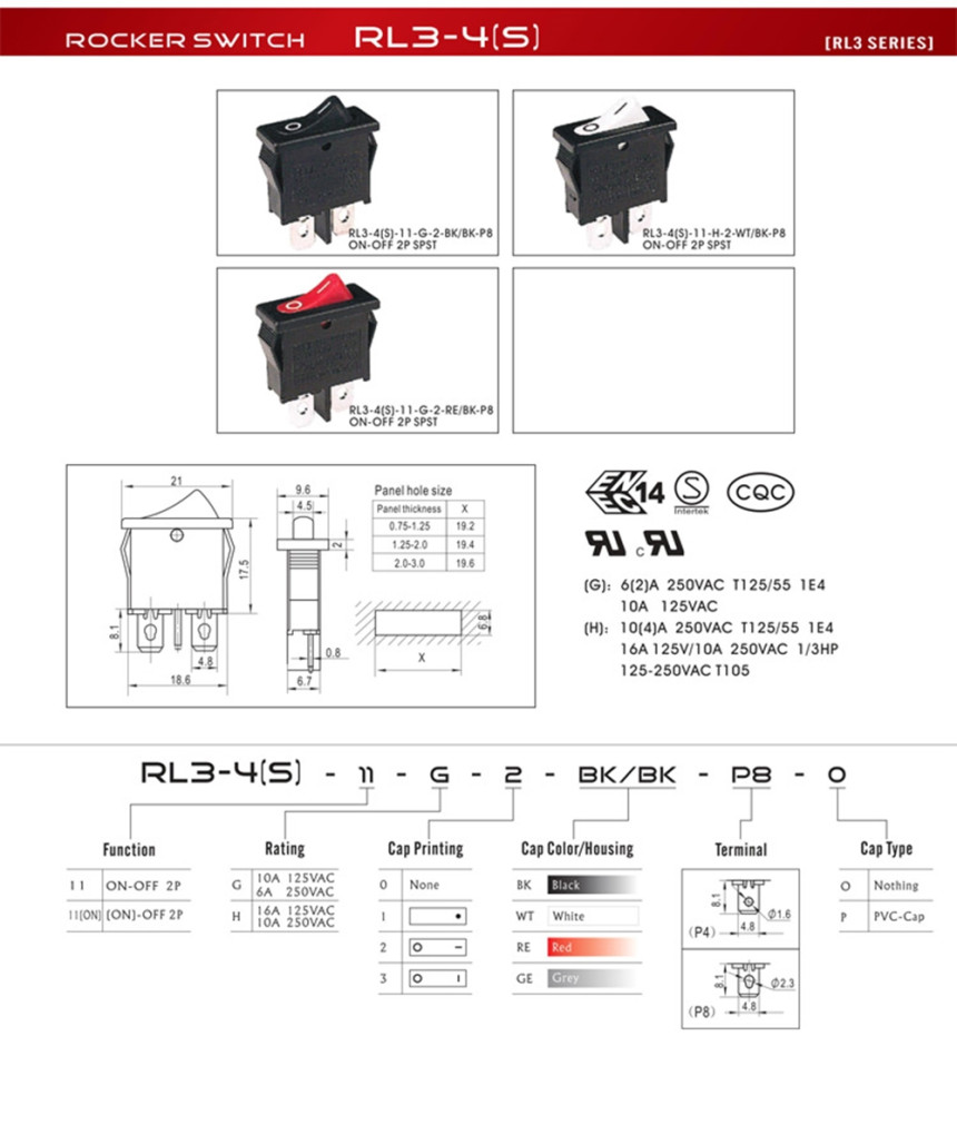 RL3-4(S)11-G-2-BK/BK-P8 시소 로커 전원 라커 스위치 RLEIL