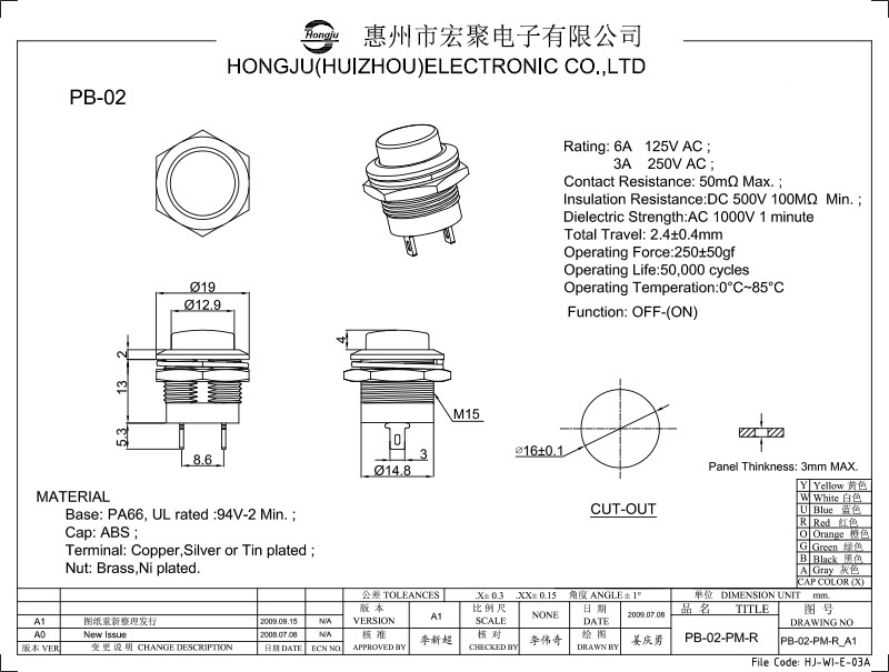 PB-02-PM-Y 푸쉬 푸시 버튼 원형 스위치 16파이 PUSH BUTTON SWITCH HONGJU