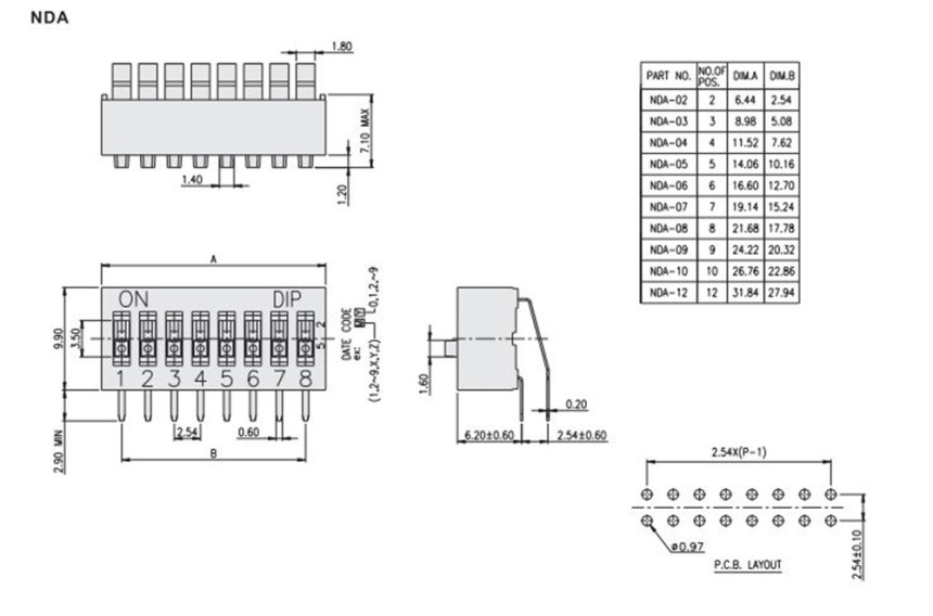 DA-08-V DIP DIP SWITCH 딥스위치 딥트로닉스 DIPTRONICS | 파츠바다 - 모든 전자부품의 정답