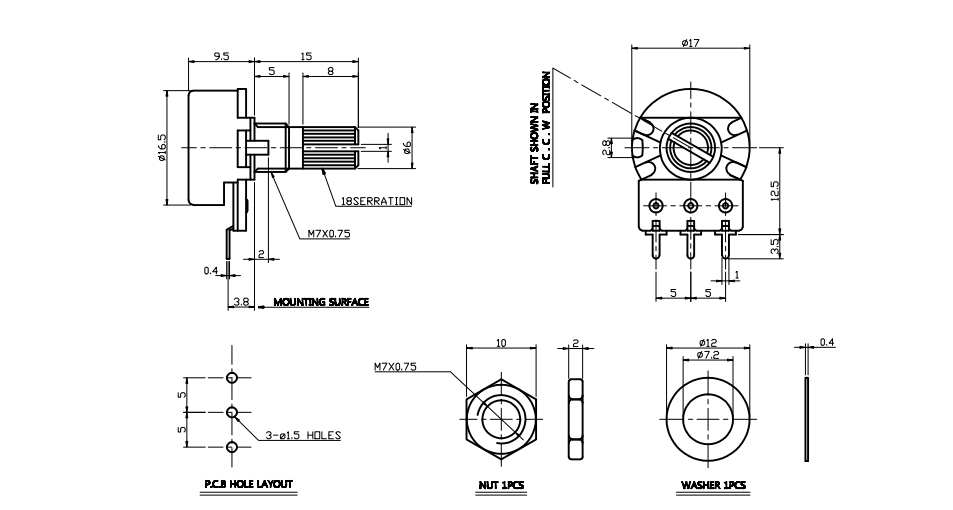 RV1601-15SP 가변저항 아두이노 라즈베리파이 포텐셔미터 potentiometer | 파츠바다 - 모든 전자부품의 정답