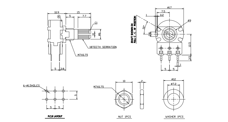 RV16404-15SP 가변저항 아두이노 라즈베리파이 포텐셔미터 potentiometer | 파츠바다 - 모든 전자부품의 정답