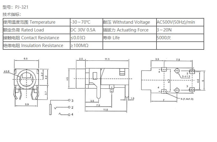 PJ-321 스테레오 3.5파이 폰잭 PHONE JACK 이어폰