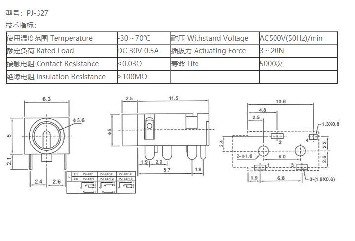 PJ-327 스테레오 3.5파이 폰잭 PHONE JACK 이어폰