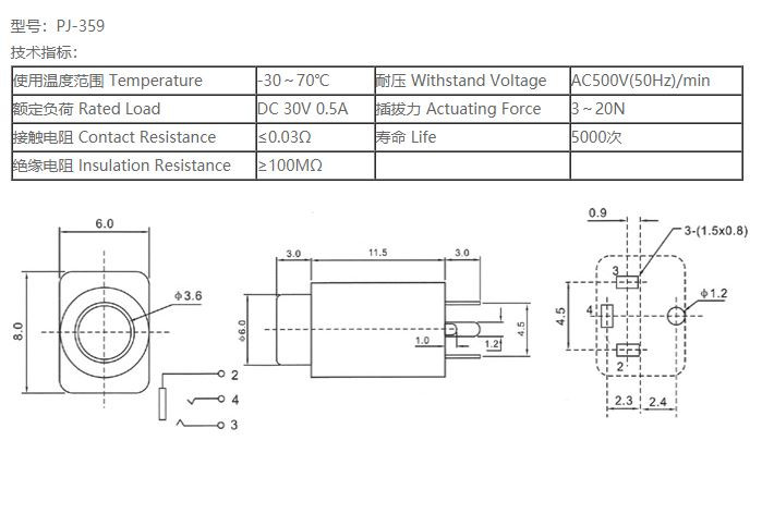 PJ-359 스테레오 3.5파이 폰잭 PHONE JACK 이어폰
