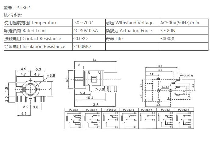 PJ-362 스테레오 3.5파이 폰잭 PHONE JACK 이어폰