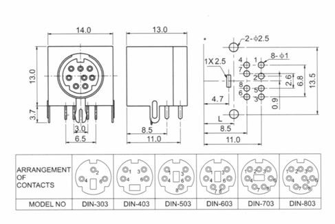 DIN-803 8Pin 미니 딘잭 MINI DIN JACK