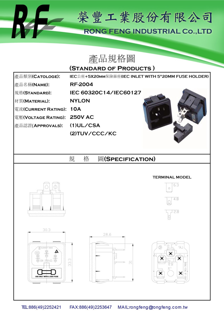 전원소켓 AC SOCKET INLET 커넥터 RF-2004 RONGFENG | 파츠바다 - 모든 전자부품의 정답
